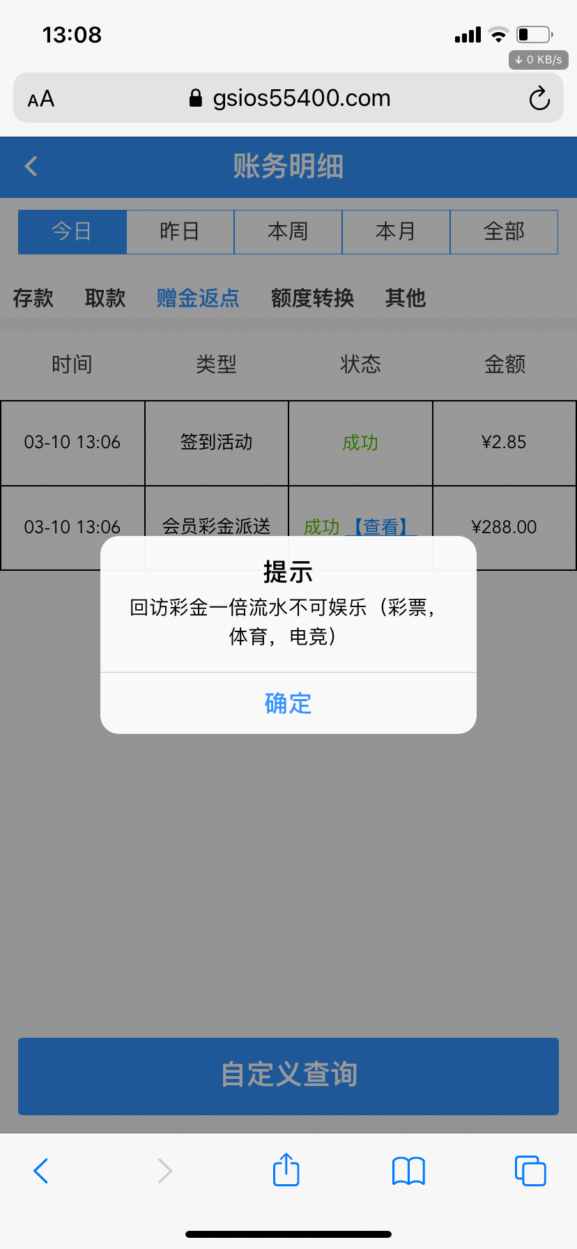 一年多没充值了,看看有没有漏接电话,登录送了288一杯流水