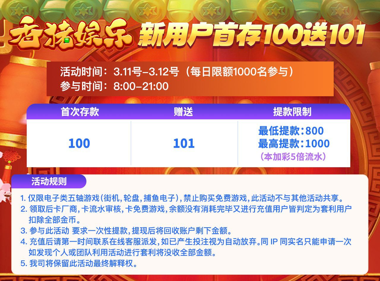 新用户注册送18彩金/10倍流水/108提现只能玩电子 不能买免费