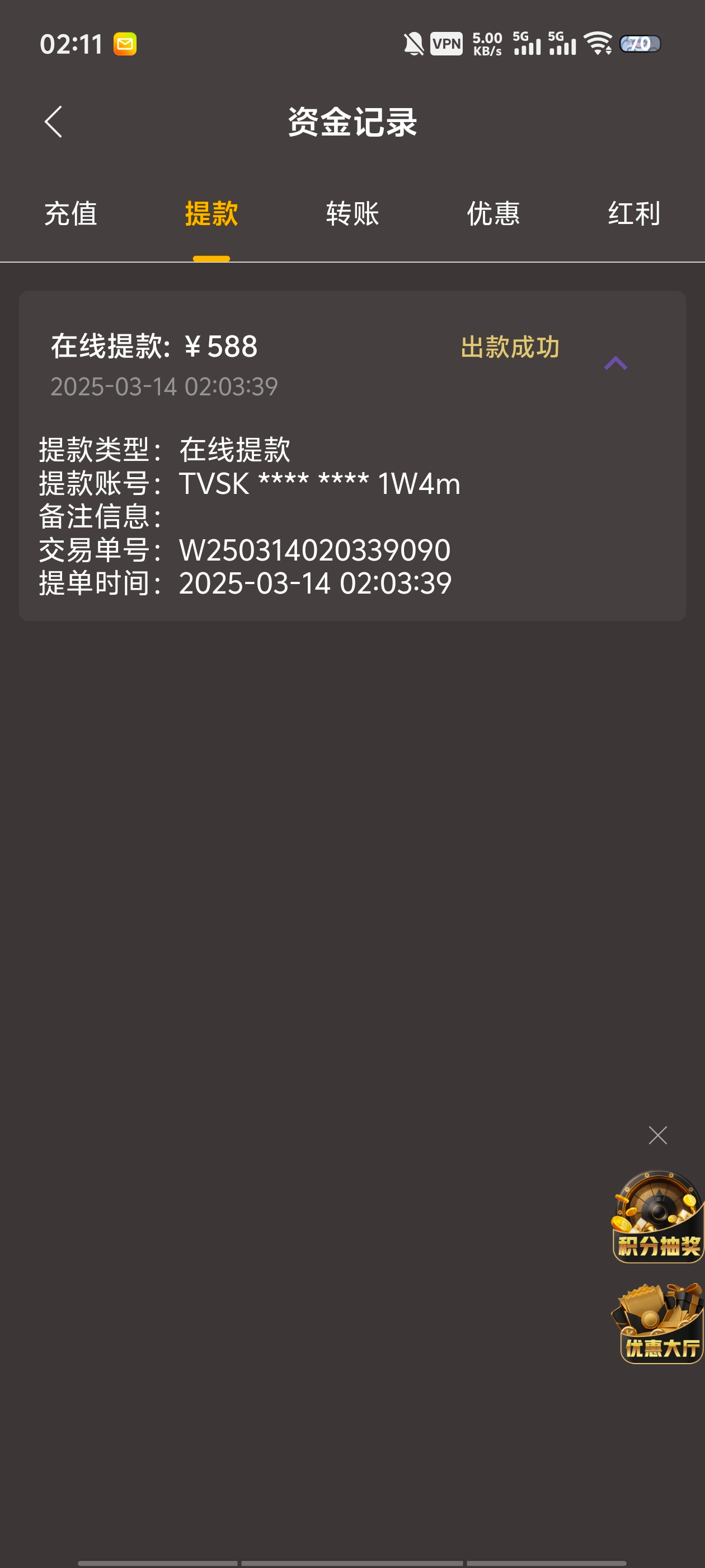 活动③爆大奖提款了 在此贴评论 附上中奖截图