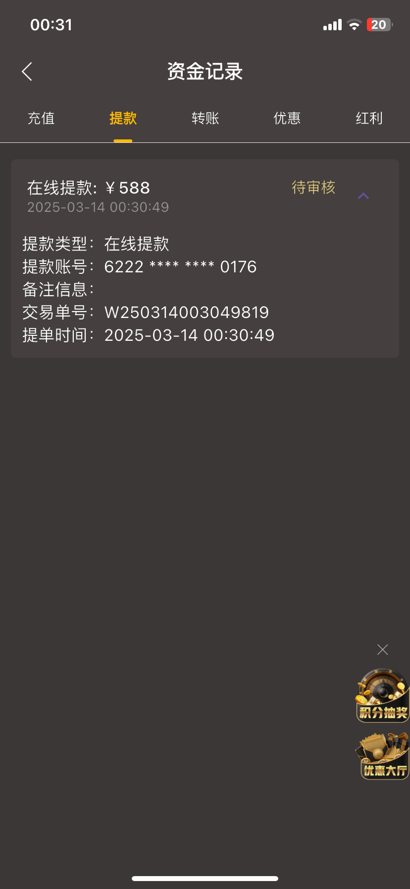 彩金没到账啊