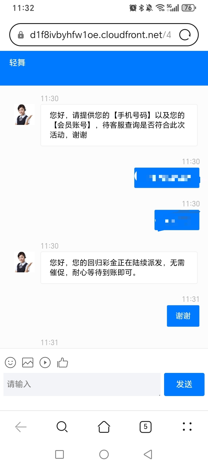 在线客服说领取神秘金,发账号,手机号我没充值过都领了