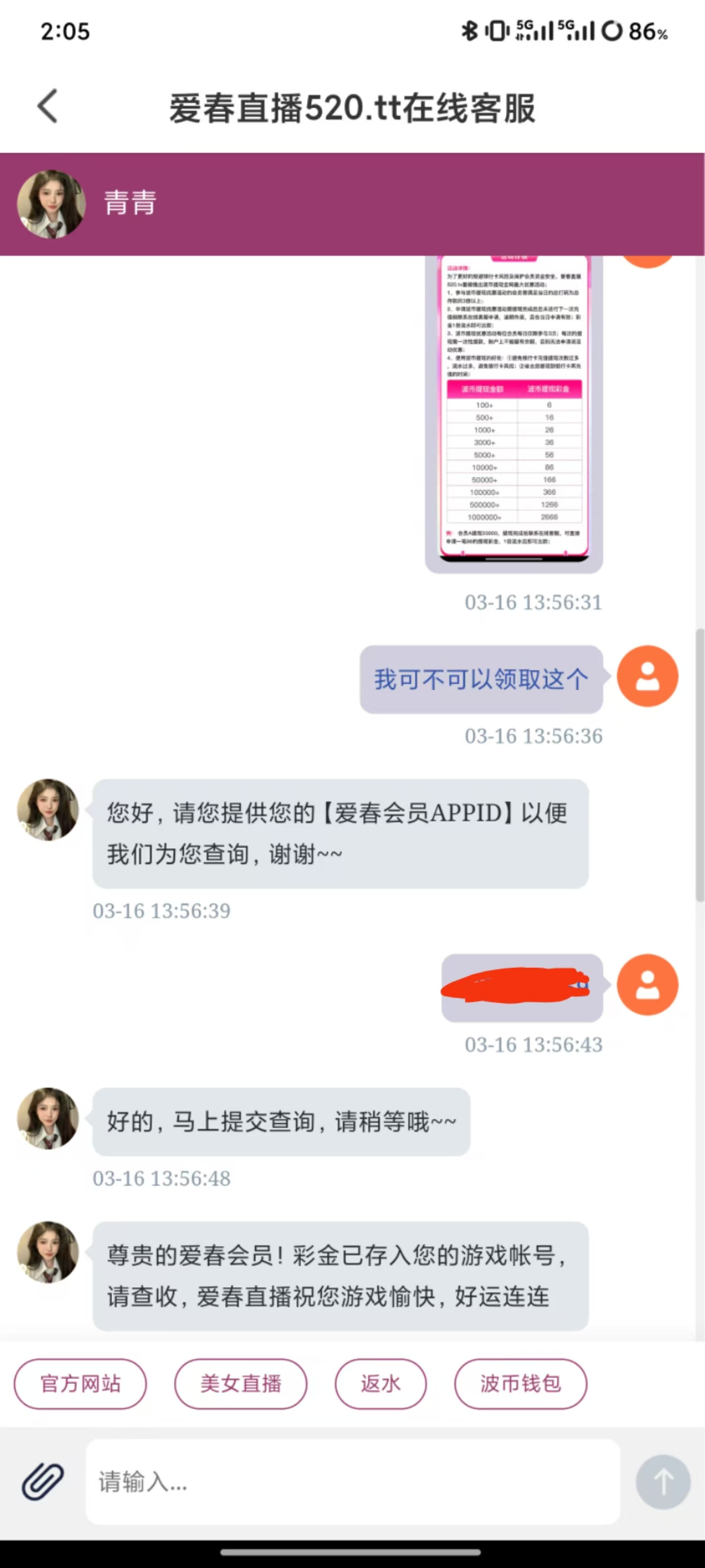 爱春直播昨天有提现成功的嘛?提现100+今天可以领取6彩金,500+可以领取16彩金,我领到了6,但是没打出来,老哥们快去冲。