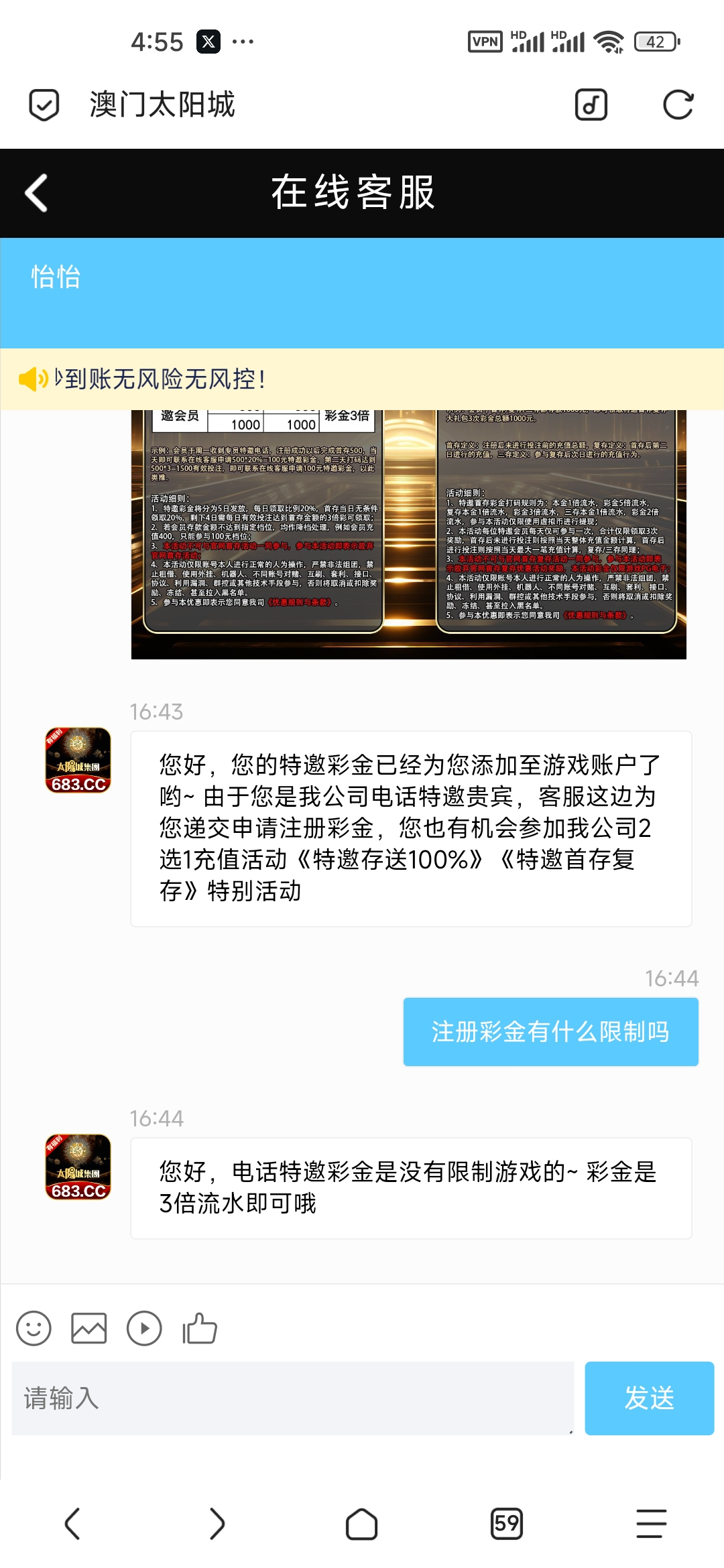 电话特邀,注册直接找客服报手机号,看看有没有,自己去碰碰。(我没绑卡也没绑手机)