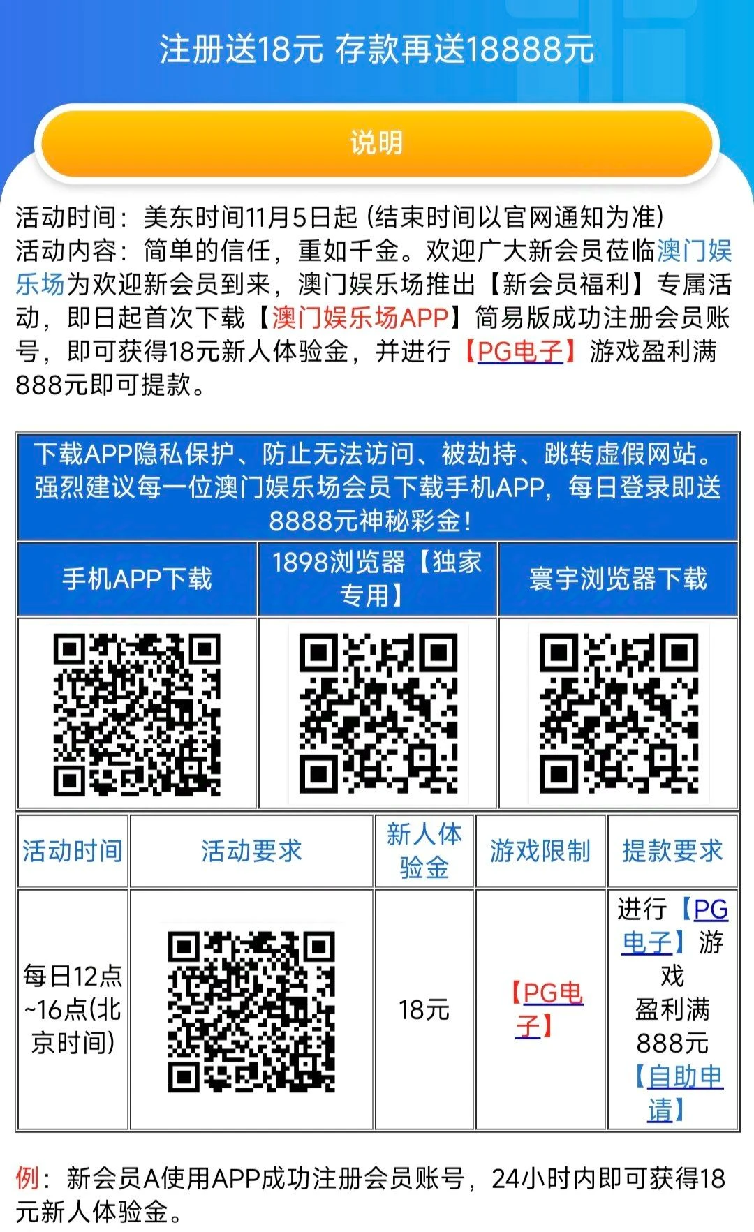 新用户注册完善资料活动里自助申请18,限制PG电子,最低100提现。刚出的活动看脸送。
