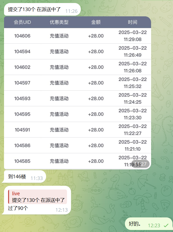 送了会更新派送情况,大家完善手机号+提款信息 留言ID等待派送就好。