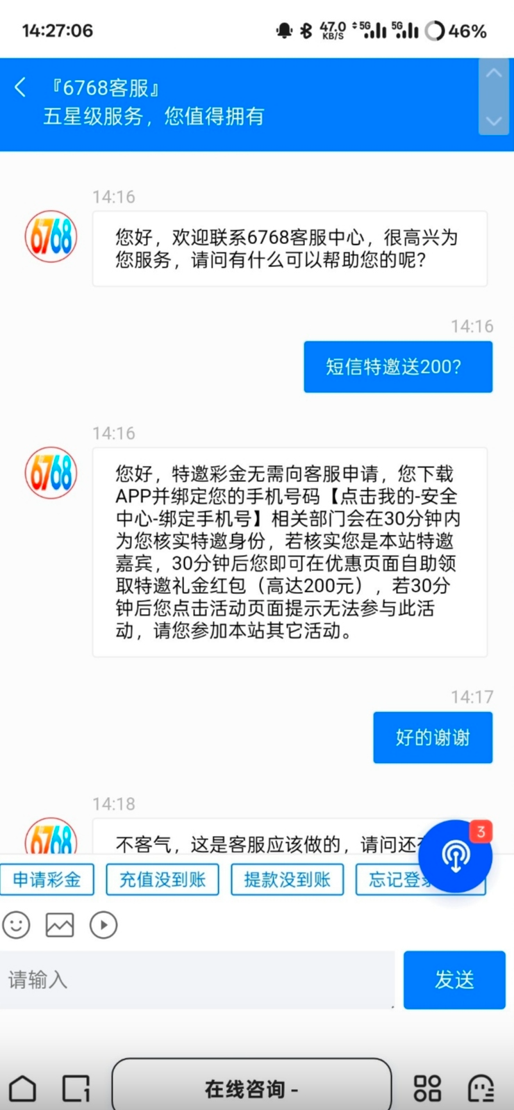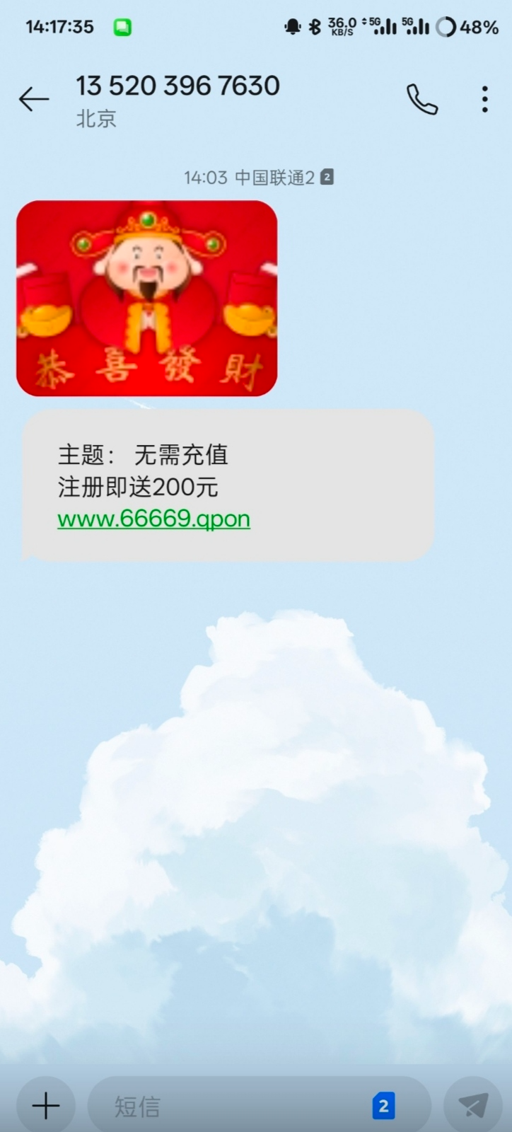 6768彩票短信特邀送20 ,可以拿短信试试,出款自测白嫖不要充值