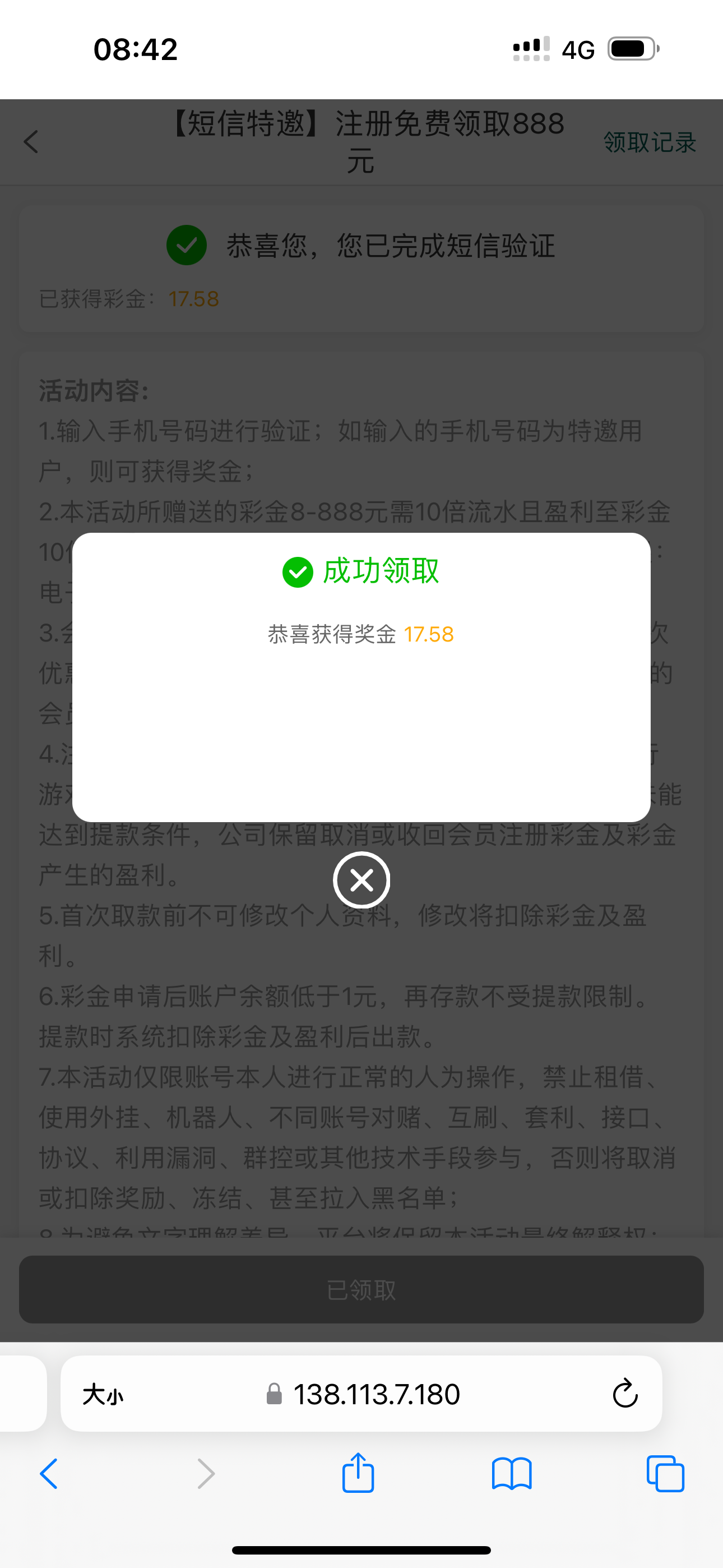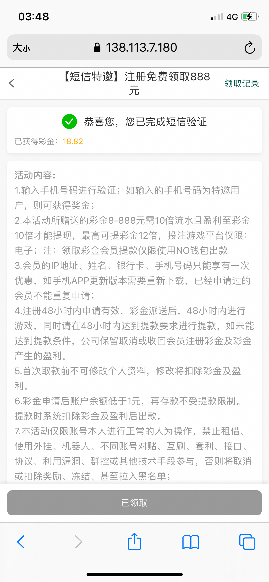 之前不符合,今天收到短信领到了。不符合的可以先注册等短信。特邀地址http://63709.pet
