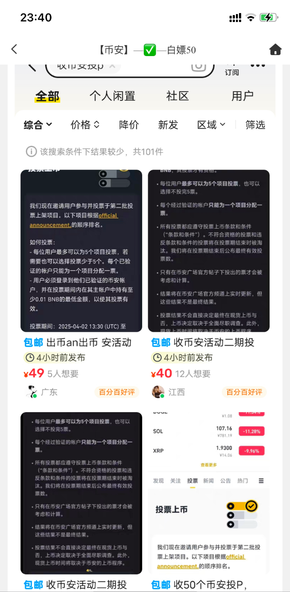 闲鱼上搜索收币安投票,把票改成p,因为咸鱼会违规。