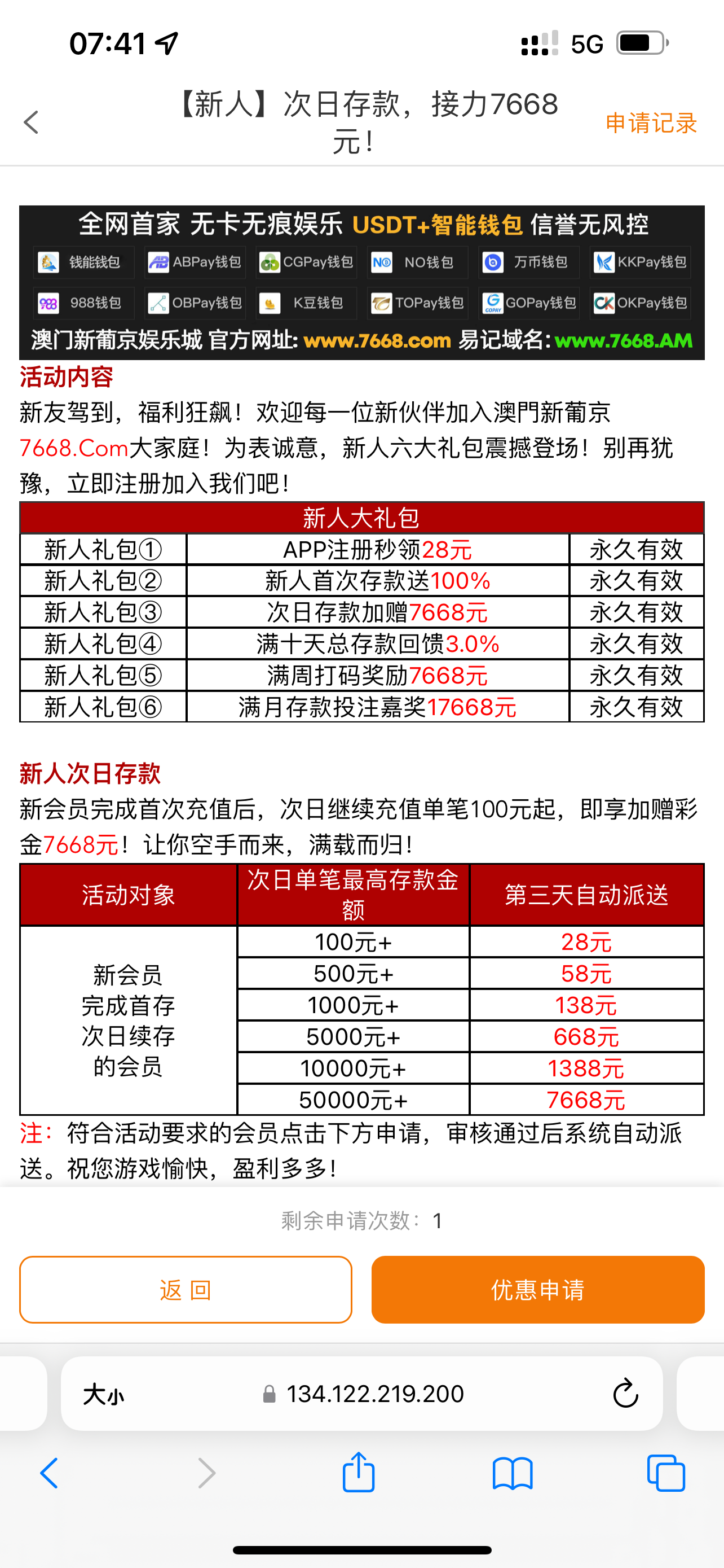 http://www.766833.loan有短信的老哥可以去领取一下,充值20块钱还送20 下载app还送28