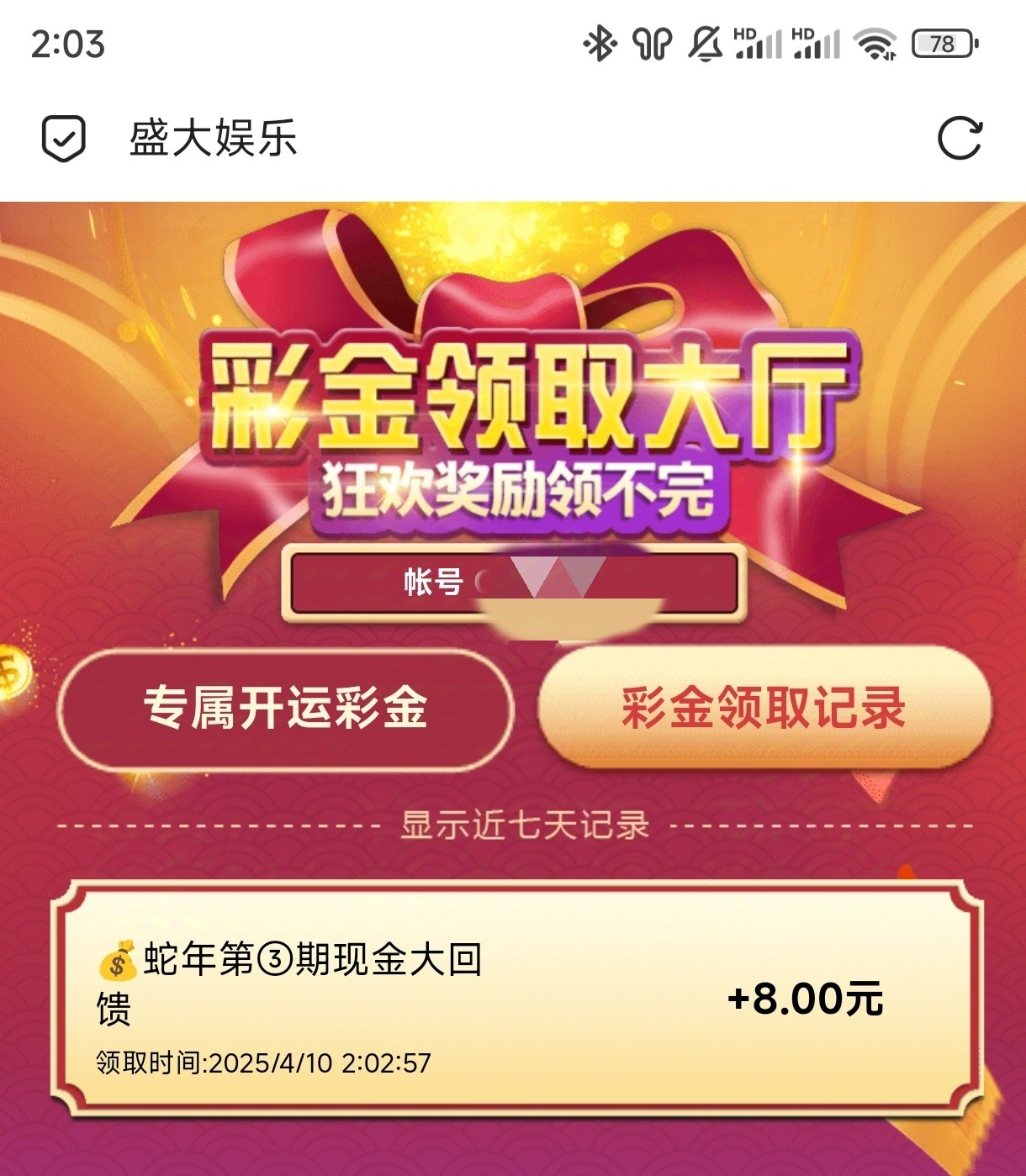 盛大第三期VIP彩金回馈 有等级上号自助领取