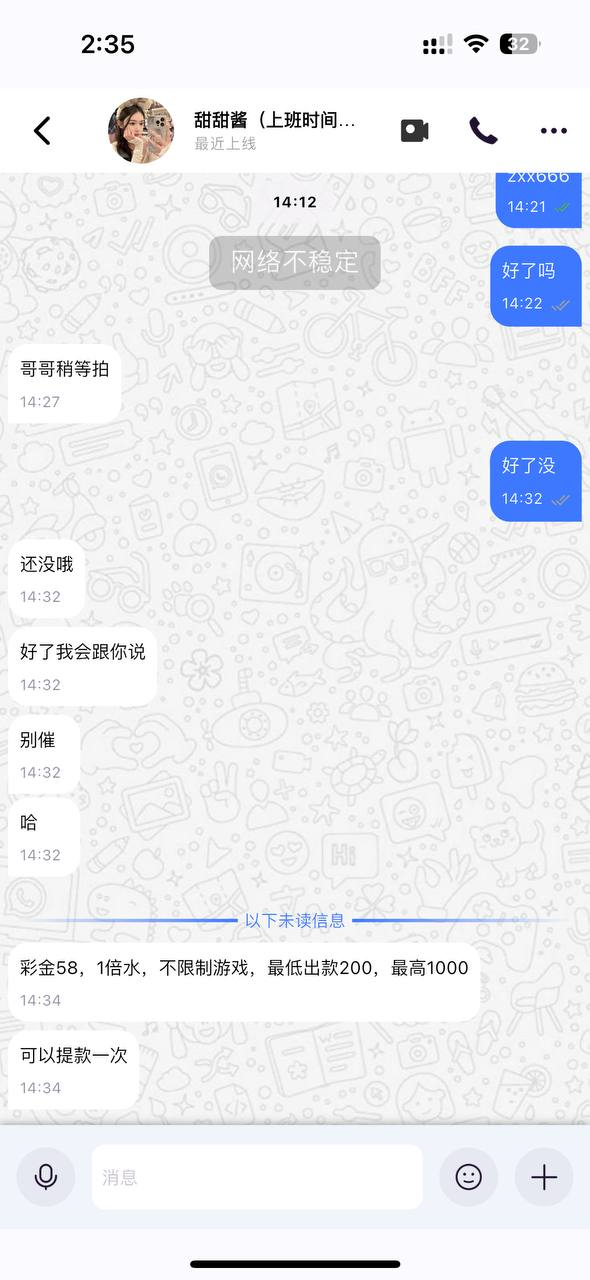 查特邀没碰到。说没打电话给你就别加我了这个刁毛客服