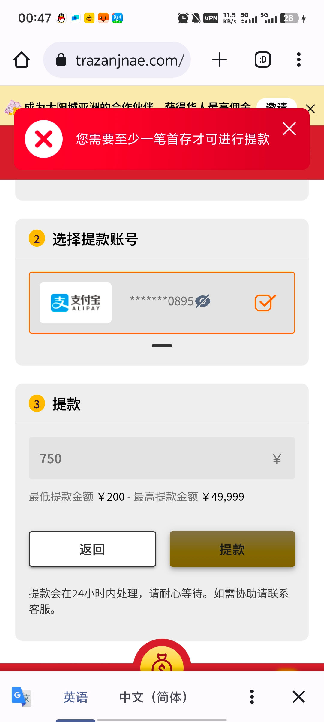 提款要充值