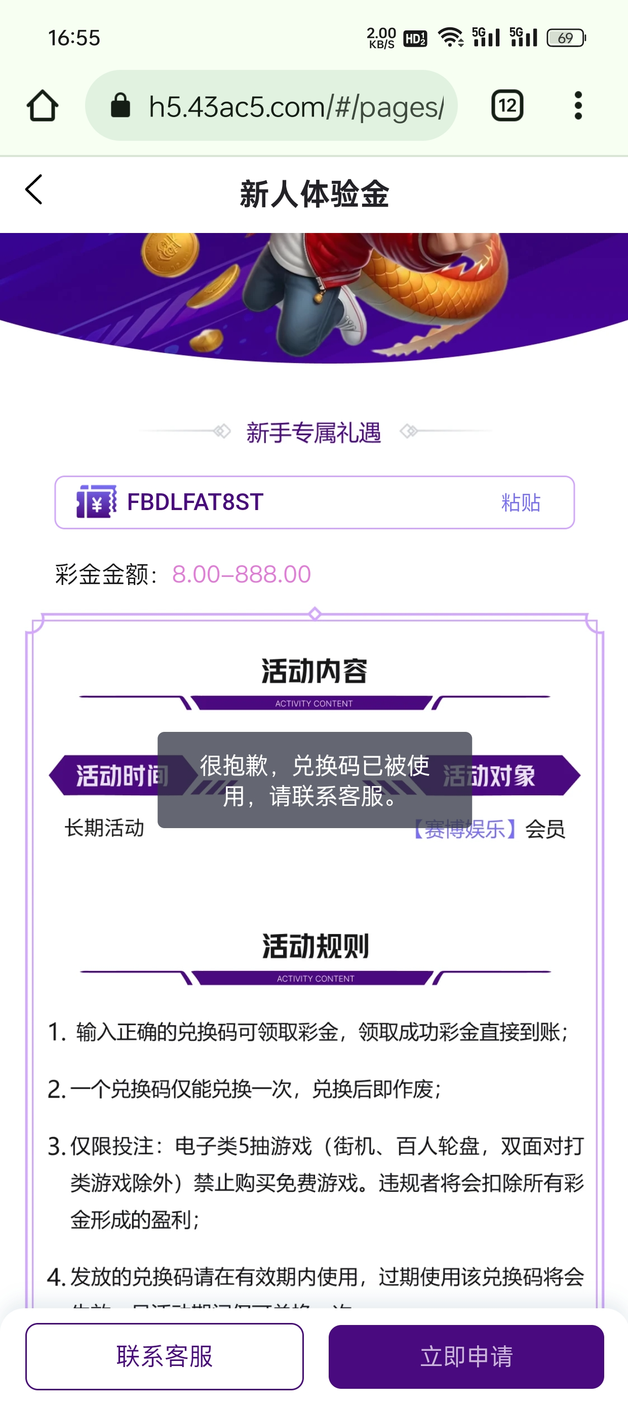商场兑换码已被使用