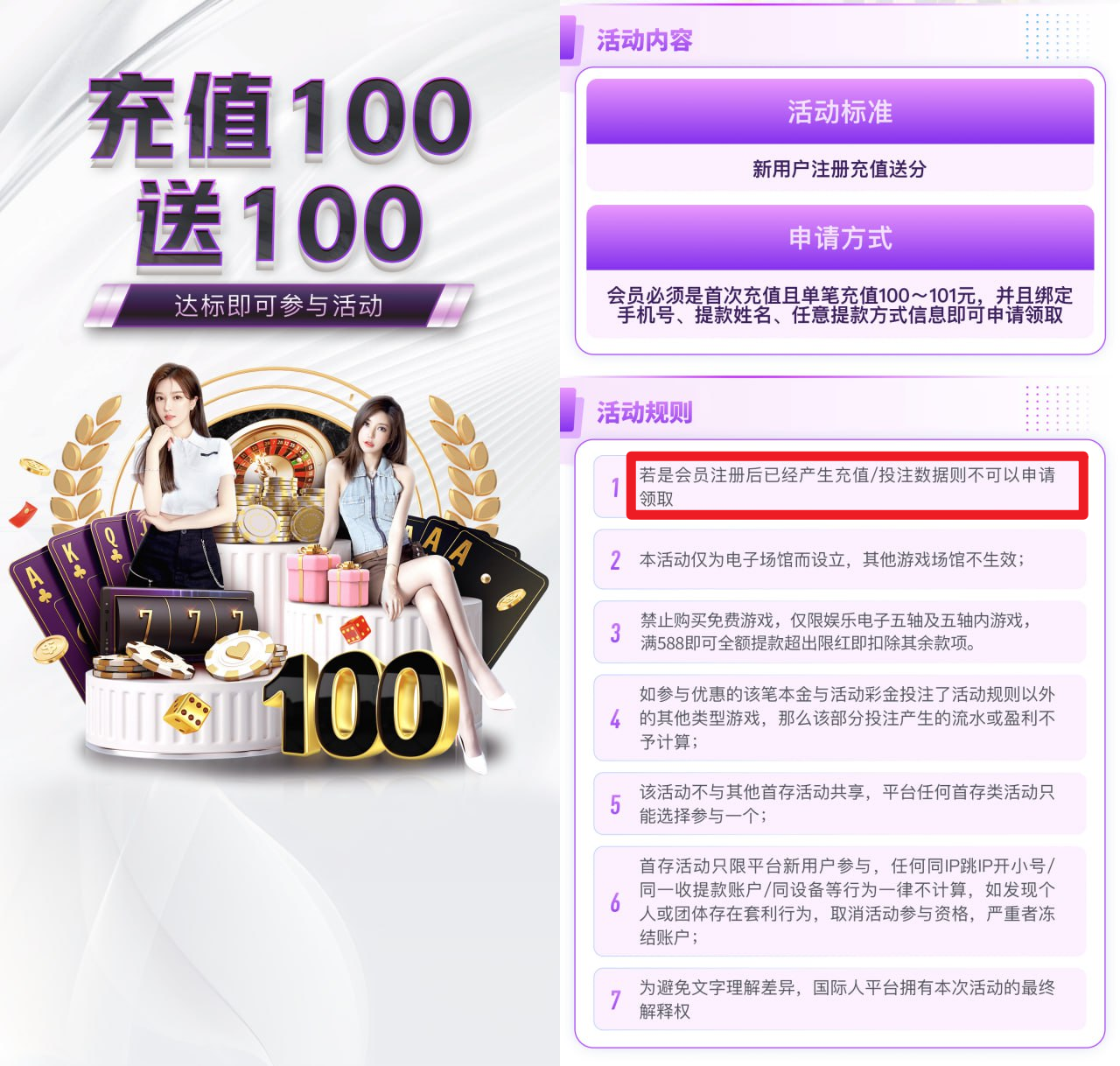 以上新用户红包  必须领取100+100首存