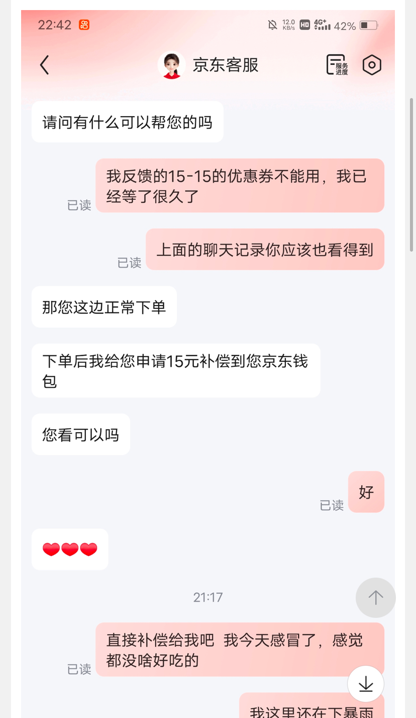 然后找客服说领取了不能用,怎么回事,把第3张图发给他,直接补偿15现金,24小时内到账。