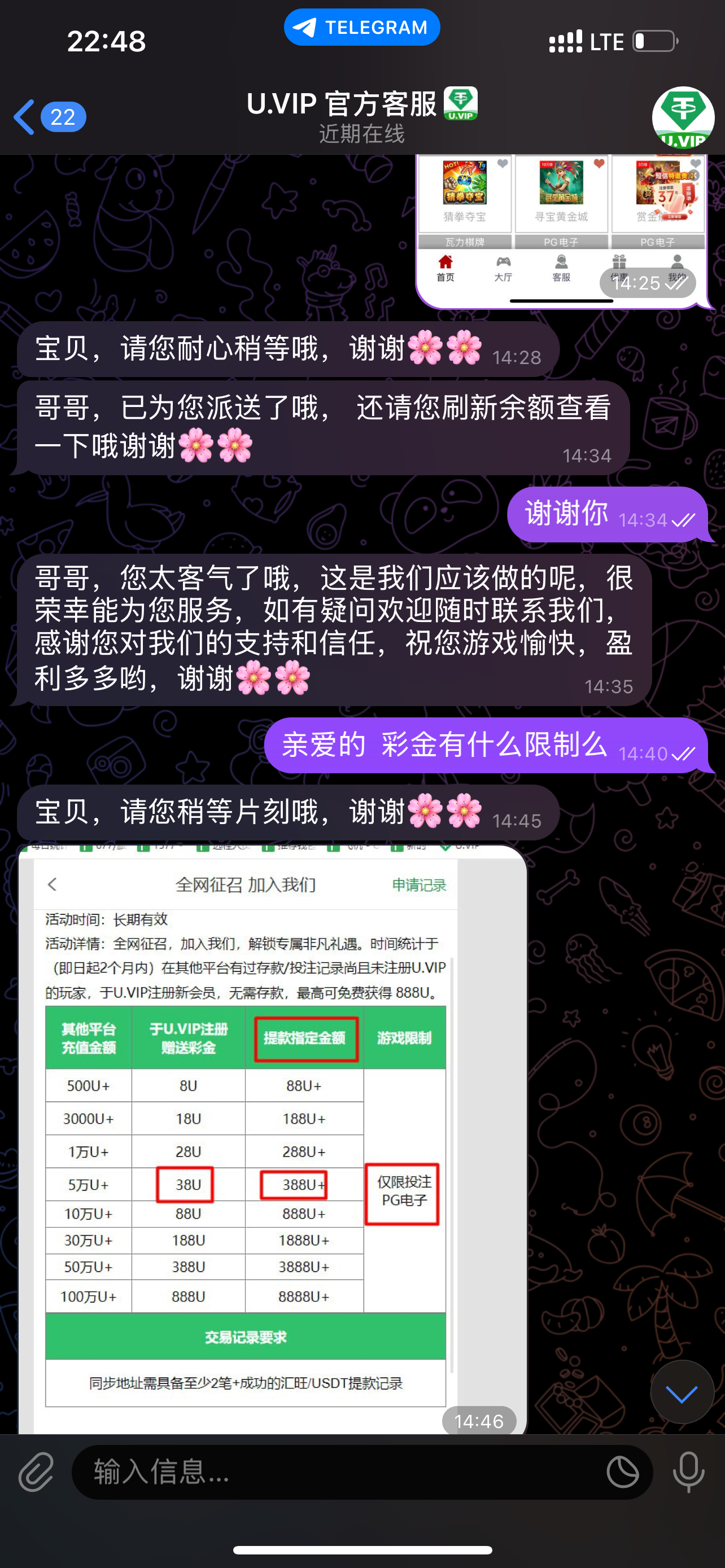 客服飞机项目,先关注频道,然后去注册,回来找客服申请,需要其他平台的u流水。