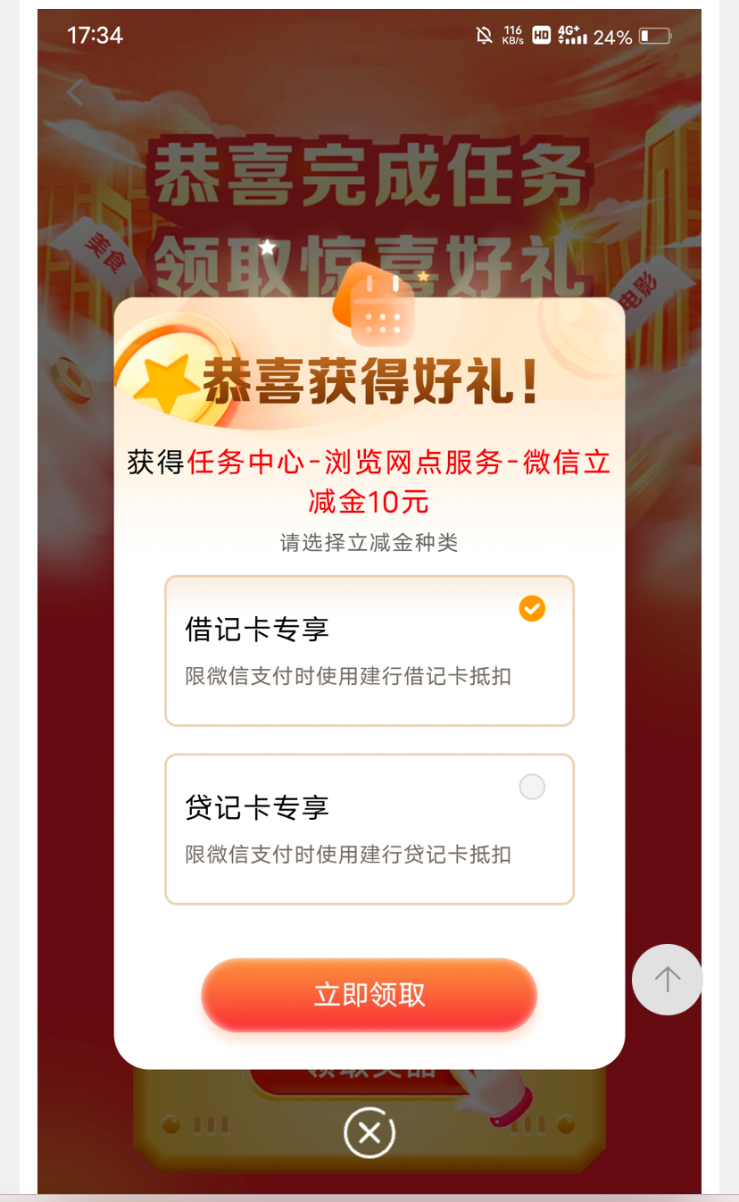 【建行抽10立减金】