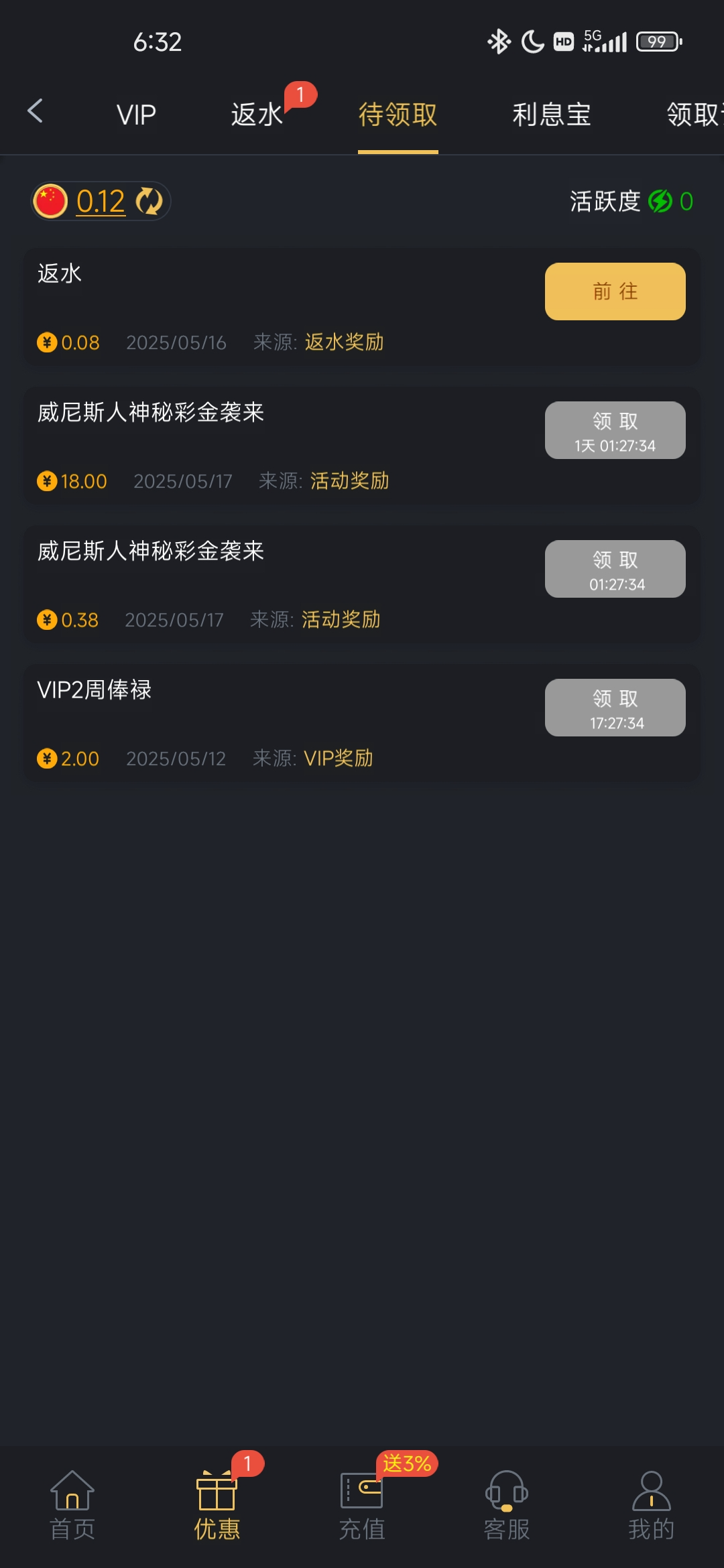 要充值过的才有,我收到站内信有,打开每天