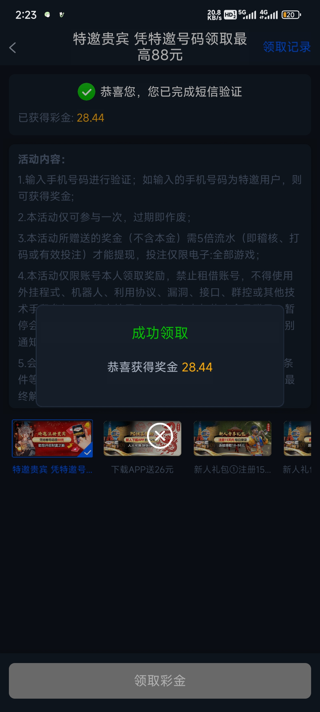 验证短信,领28-88,不限制游戏,5水