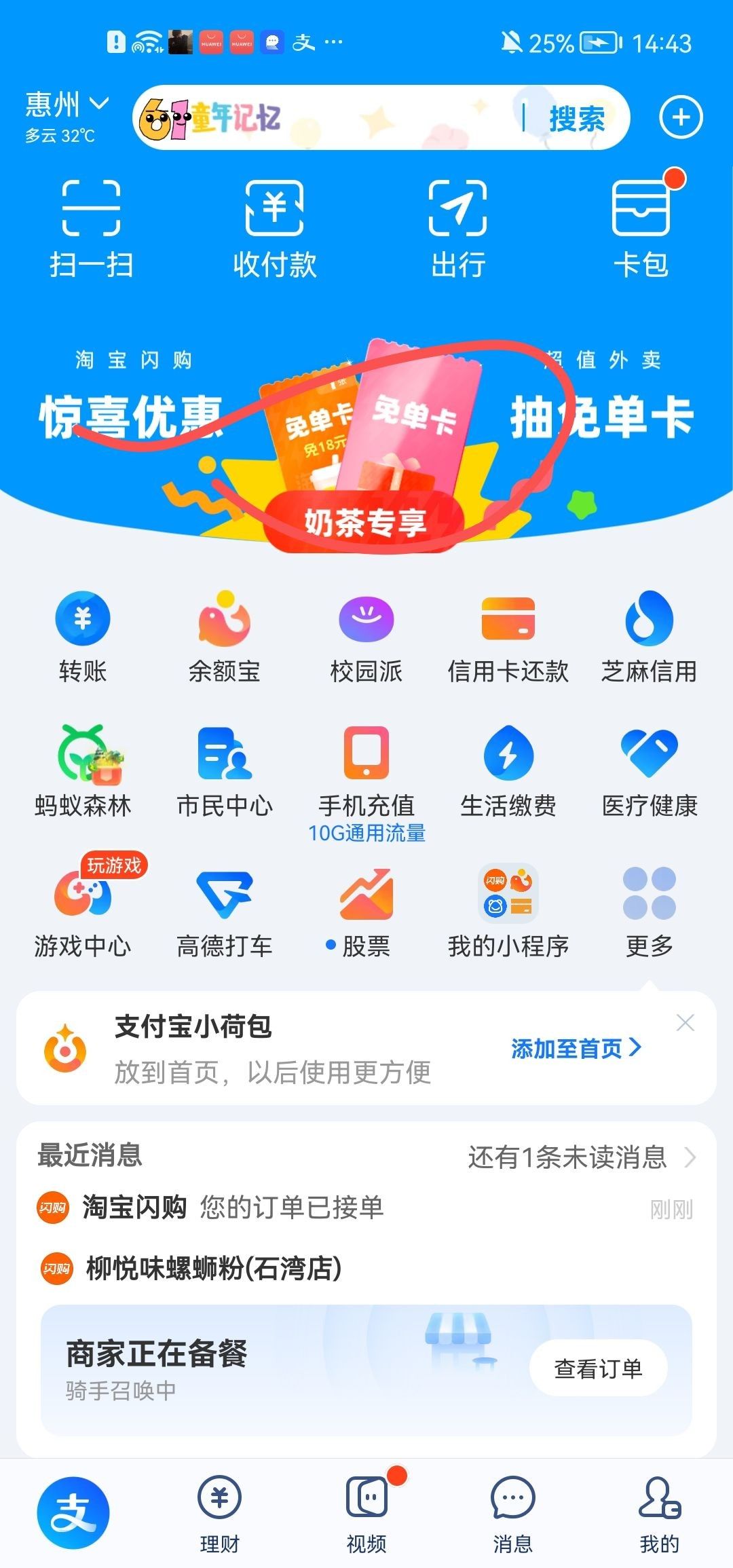 【支付宝领15元无门槛外卖劵】