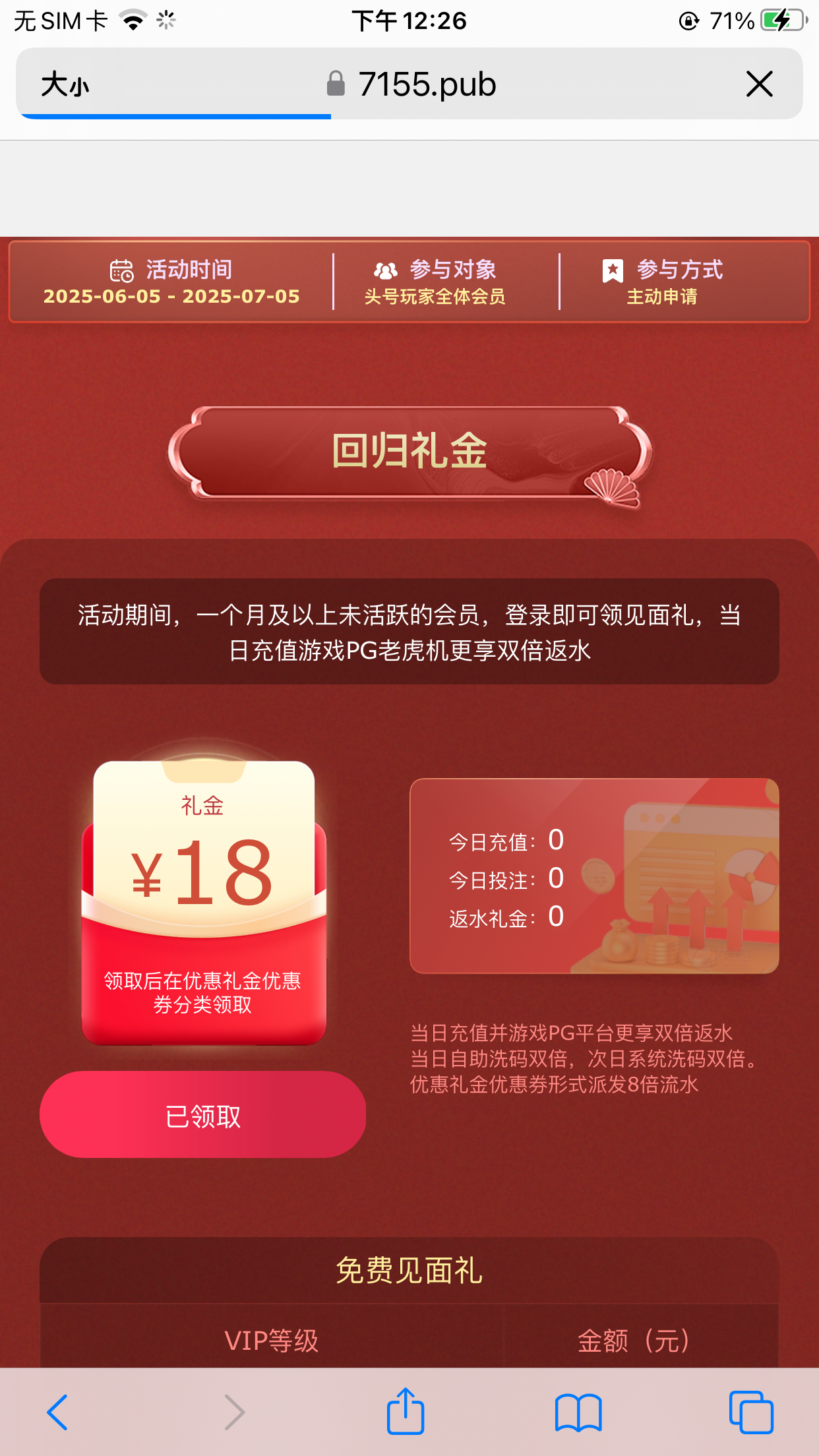 没充值过的不用去了得vip1