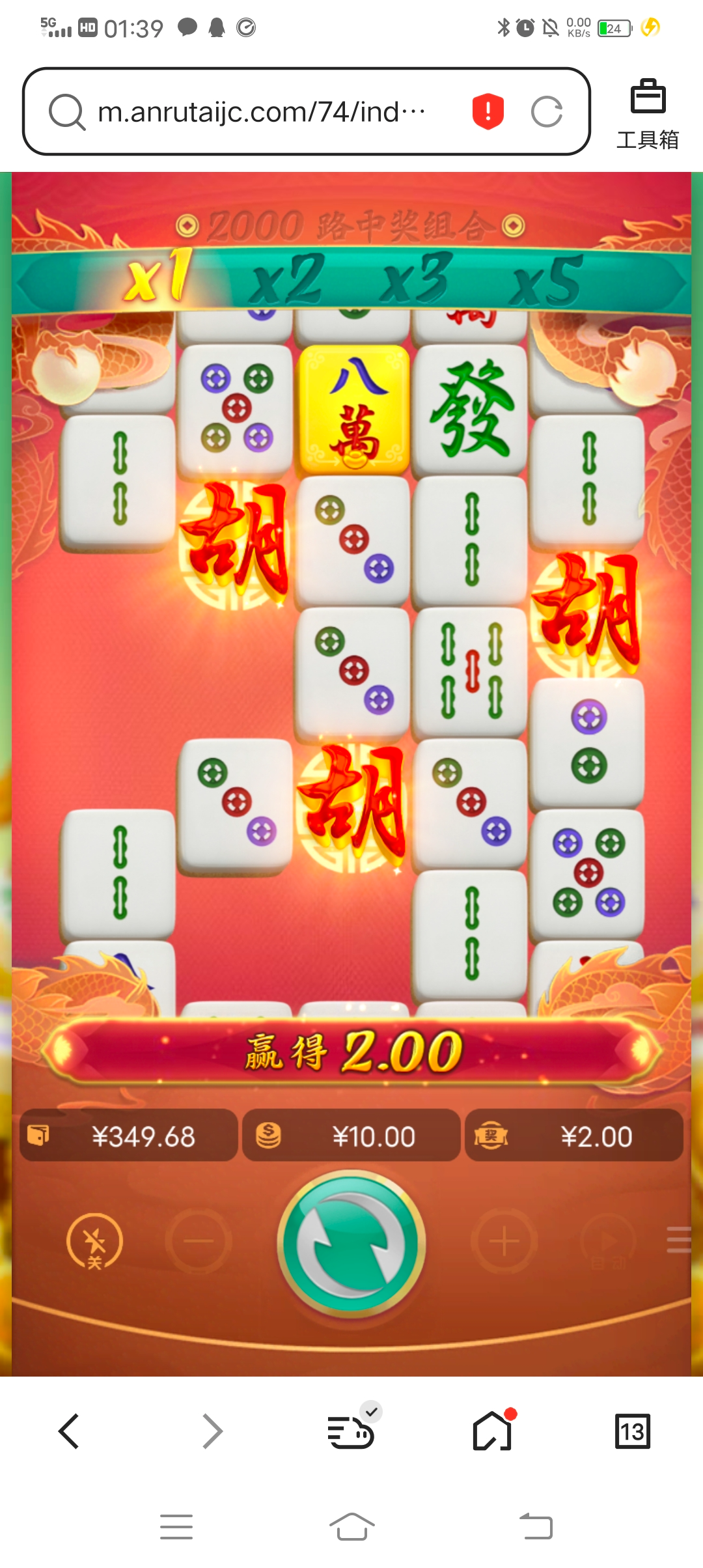 昨晚拉十块,外面十一个红中五倍,五星连珠,就差前面一个,本来赢的,后面倒输两千进去,那我岂不是局中局