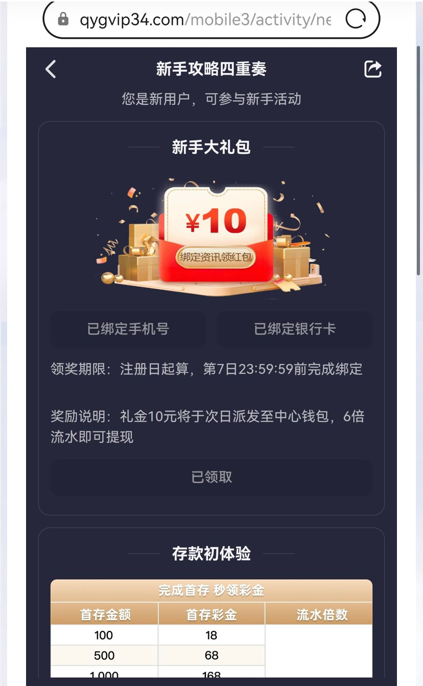 还没注册过的,注册个账号绑定银行卡手机号领10彩金,需要时间审核才能领取