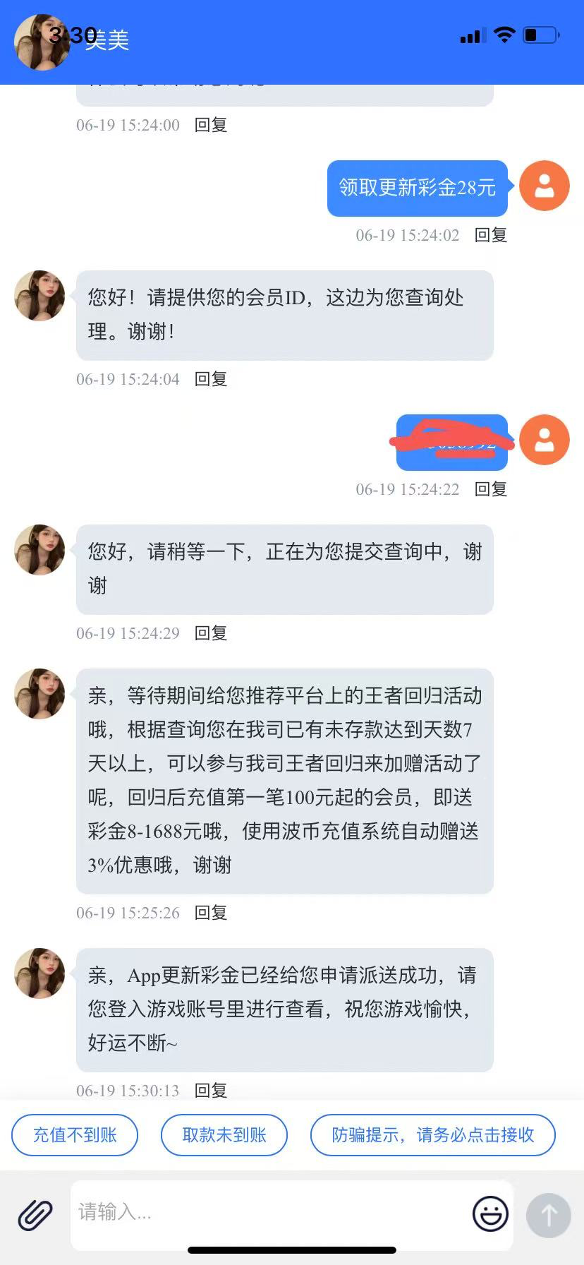 给客服发领取更新彩金28元和id